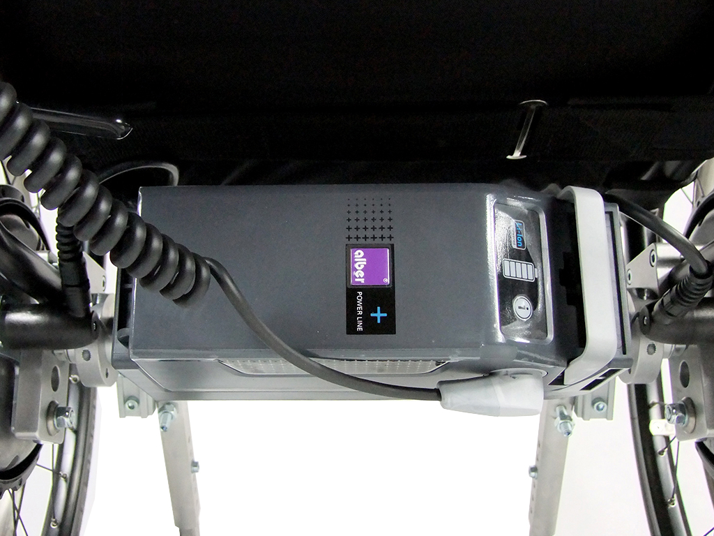 The hand control unit is the key to the e-fix. It has a large and reliable battery status display, individually adjustable driving characteristics and ergonomically arranged controls. The battery pack is suspended under the seat to save space, and is easy to remove.